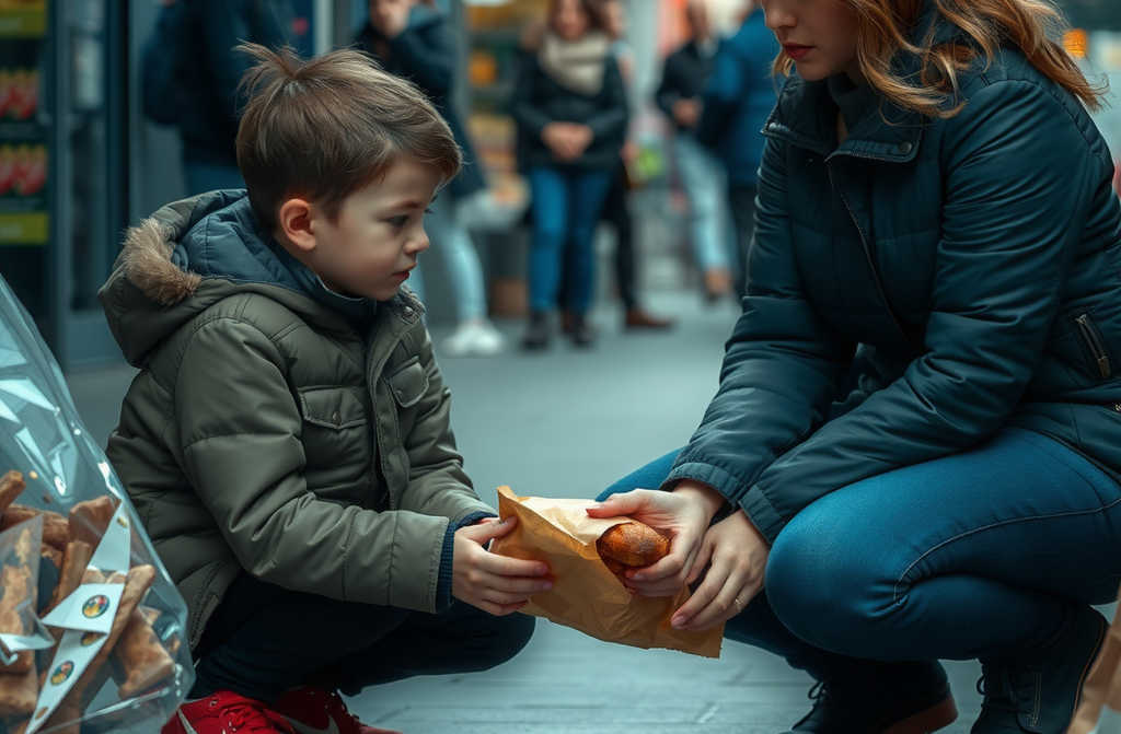 At first, the boy was hesitant to speak. When I called for the shops security guard to help find his mother, he finally opened up. His name was Oliver, and he was just five. While the guard made inquiries, I slipped inside the shop and picked up something for Oliver to eat. He refused at first, but hunger took over and he finished the sandwich quickly.