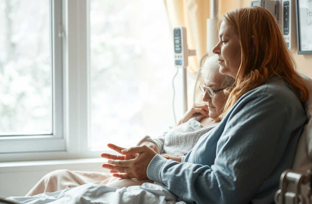 I tiptoed to the side of the bed and perched gently on its edge, lowering my voice, as if even a whisper might worsen the pain.