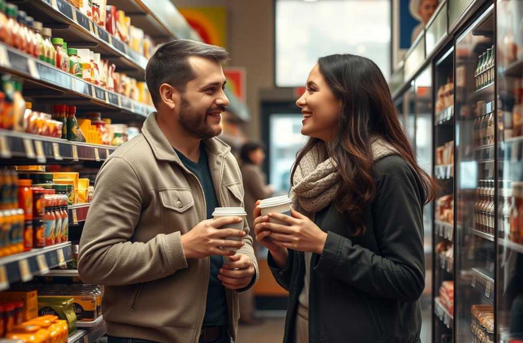 Victoria was there, comparing yogurts, a broadshouldered man about her age, hands clearly accustomed to hard labour, arguing softly and laughing. She nudged him with her shoulder, he poked her arm in return, she squealed and hopped away.