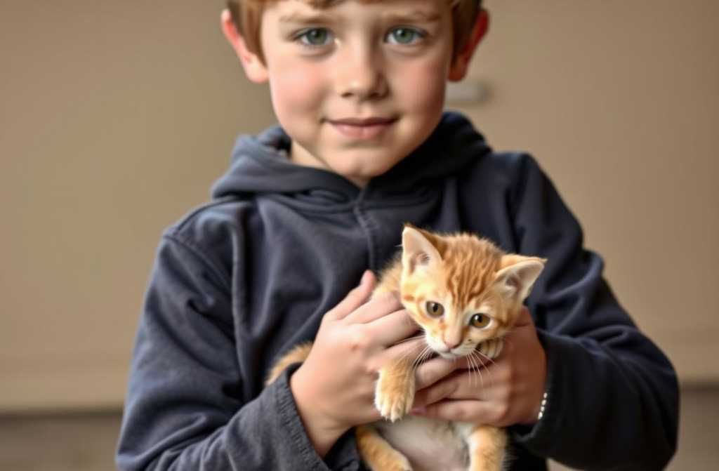 But the boy didnt budge. Instead, he lifted a tiny ginger kittenbright as sunshinetoward her.