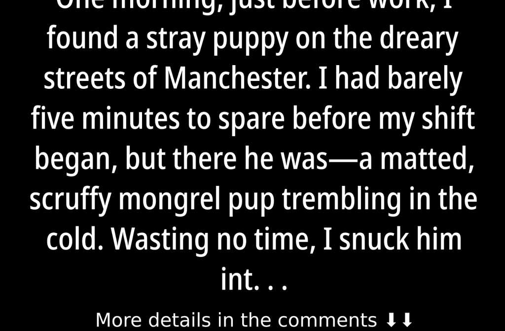 One morning, just before work, I found a stray puppy on the dreary streets of Manchester. I had barely five minutes to spare before my shift began, but there he wasa matted, scruffy mongrel pup trembling in the cold. Wasting no time, I snuck him into my office, hoping hed remain unnoticed tucked beneath my desk. But the little rascal wouldnt listen. He kept wriggling out, letting out irresistible, high-pitched yelps.