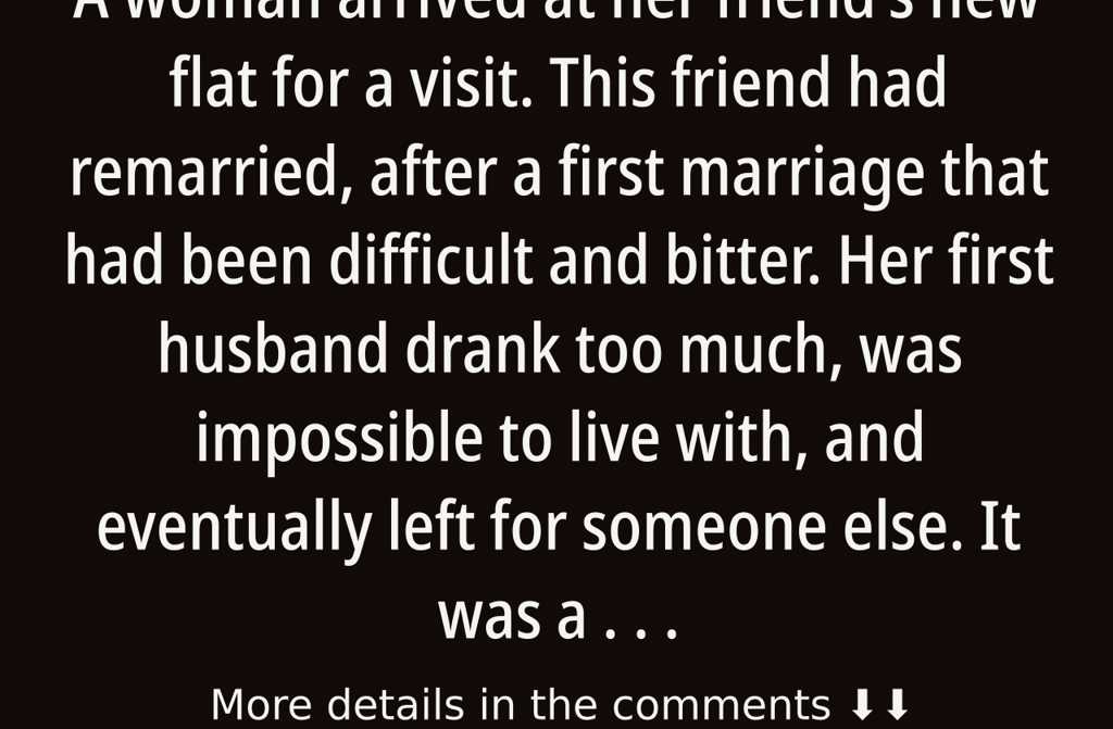 A woman arrived at her friends new flat for a visit. This friend had remarried, after a first marriage that...
