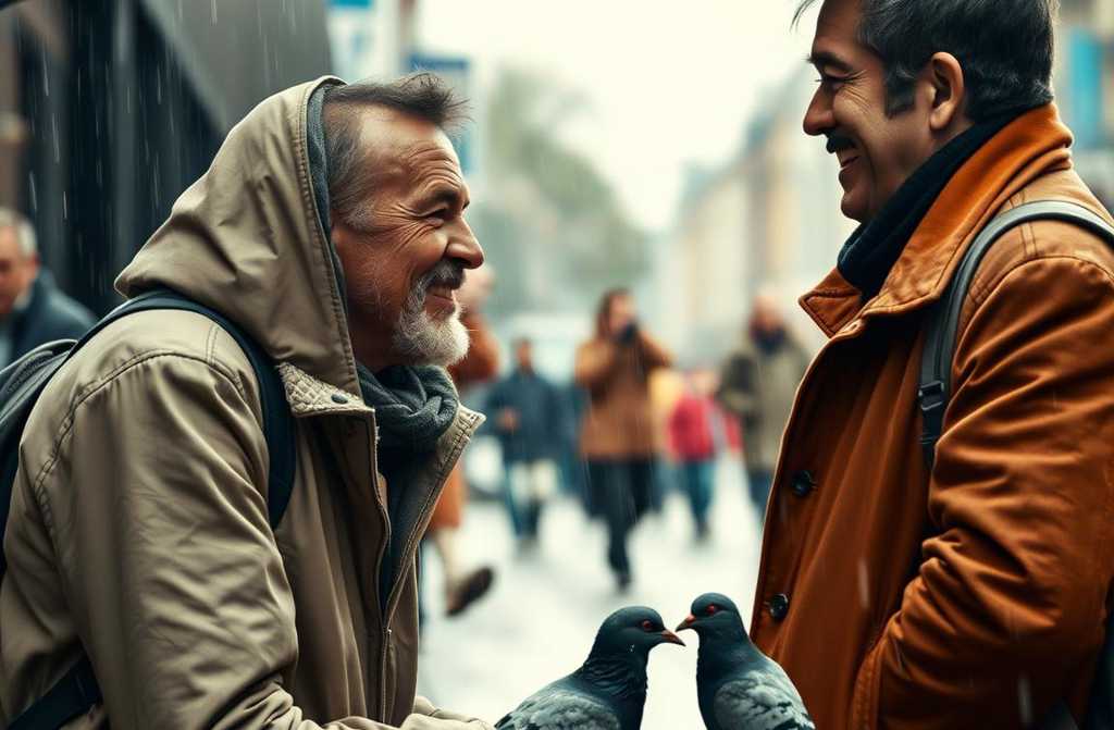 She dismissed ituntil she saw for herself. The homeless man, perhaps in his forties, with warm eyes beneath layers of grime and a scruffy beard, crumbled bread onto the pavement, whispering to each bird as if they were friends. Oliver stood nearby, watching with a softness she hadnt seen in months.