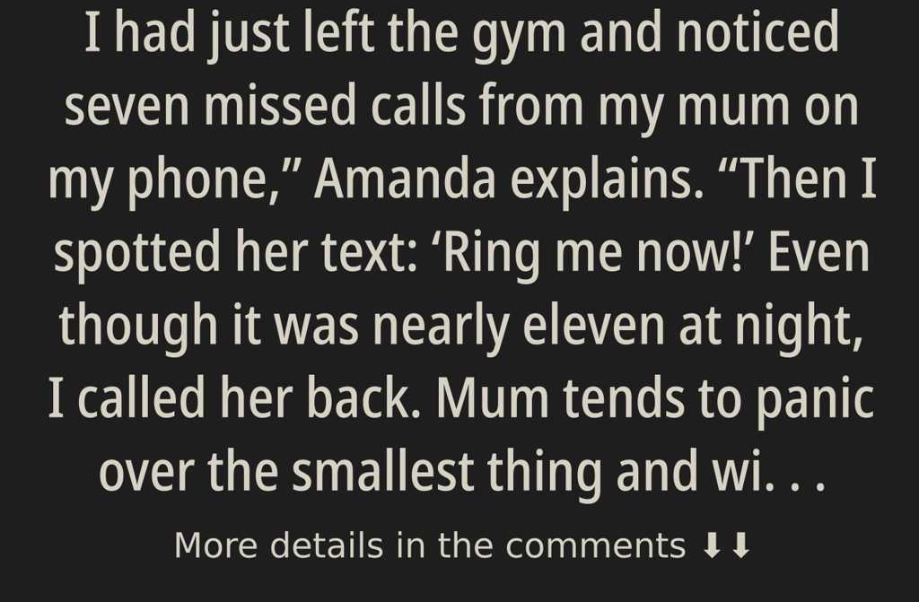 I had just left the gym and noticed seven missed calls from my mum on my phone, Amanda explains. Then...