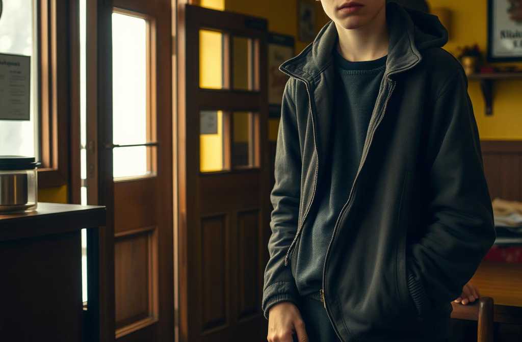 The bell above the door chimed. A gust of icy wind swept in with two figuresa lanky teenage boy with hollow cheeks and worn-out trainers, carrying a small girl on his back. Their hair was tangled, her face pressed into his shoulder as if hiding from the world.