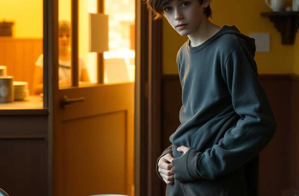 For fifteen minutes, the diner was filled only with the sound of two children eating. Then, a quiet *Thank you* slipped from the boys lips before they left, the girl clinging to him as they vanished into the cold.