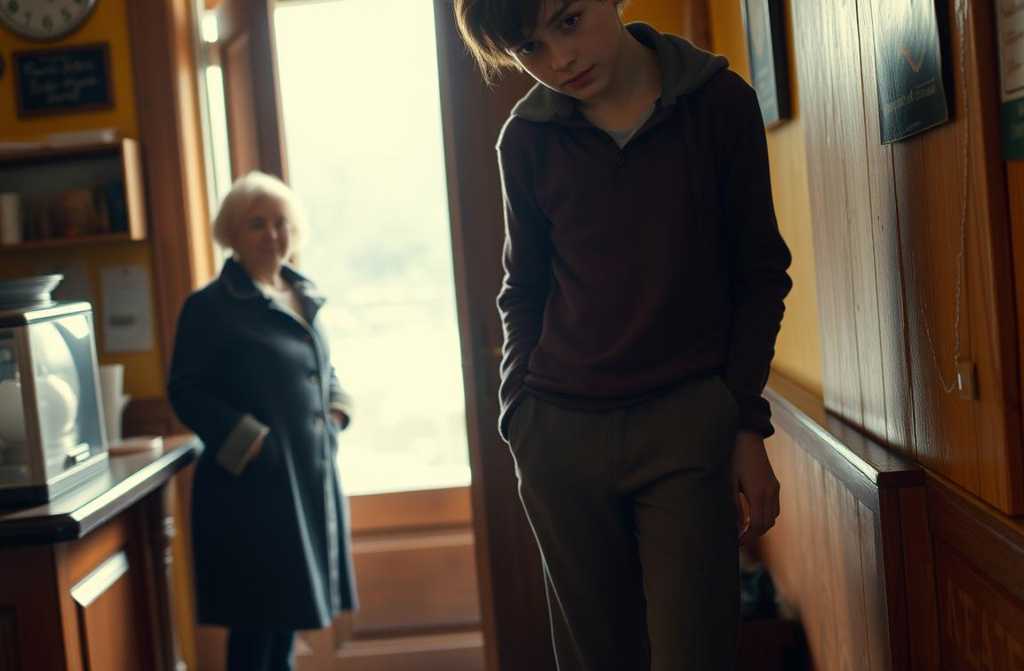 The bell above the door jingled. A gust of icy wind swept in with two figuresa lanky teenage boy with hollow cheeks and scuffed trainers, carrying a small girl on his back. Their hair was tangled, her face buried against his shoulder as if hiding from the world.
