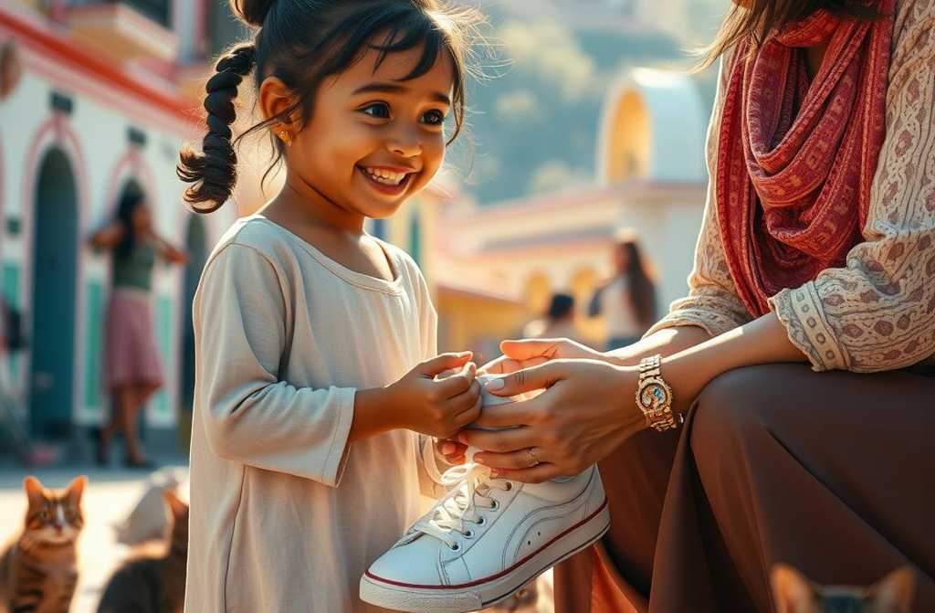 Years later, she returned to the spot where it all began and saw other barefoot girls. She smiled and approached themnot to lecture, but to show by example that they, too, could walk with pride, strength, and hope. And so, Stars white trainers ceased to be just hers. They became a symbolof resilience, of self-worth, of lovein a village learning to see the beauty in every child.