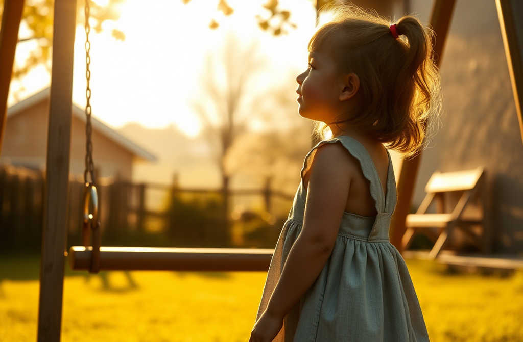 In the middle of the yard rose a set of swaying swings, their chains humming in the breeze, beckoning her. Are those for me, Uncle George? she gasped, eyes wide. Did you make these swings for me?