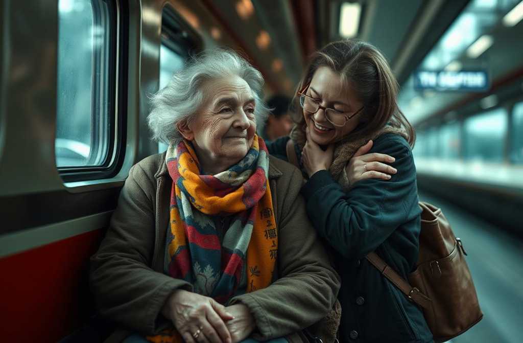 Ось і посадку оголосили, і Дмитро вийшов на перон. Після тижневого відрядження повертався додому. Зайшов у плацкартний вагон, знайшов своє нижнє місце. Поки влаштовувався, почув, як хтось важко дихаючи йде вагоном. Обернувся літня жінка з валізкою на колесиках, більше схожою на рюкзак, у осінньому пальті та кольоровій хустці стояла навпроти, намагаючись віддихатись.