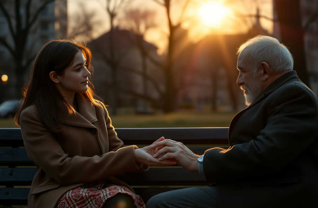 I wore a simple cotton dress, one that reminded me of the ones Mum wore in her youth. He waited on the bench, hands resting on a stick. Without the grandeur of the café, he looked frail and deeply human.
