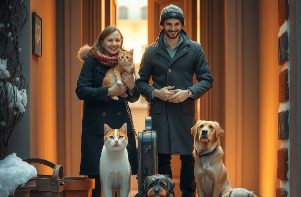 Upstairs, Alexander heard scrabbling and a cacophony of barks and miaows at the door. He opened it, frozen in surprise, as Maisie charged inscarf flappingfollowed by Bonnie and then the cats, all dusted with snow and in high spirits.