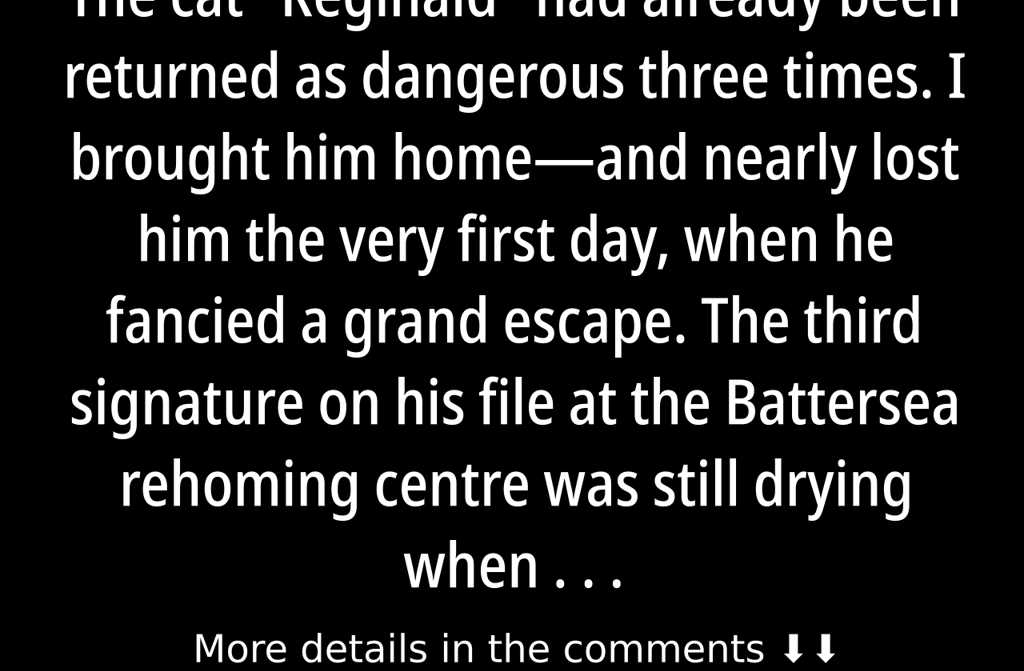 She popped open her folder without drama, just cold fact. Three families in six months. First, wanted a pet for the little onesReginald scratched a boy. Next, an older lady. He hissed every time she came near. The third family brought him back in two days. Didnt even bother to explain.