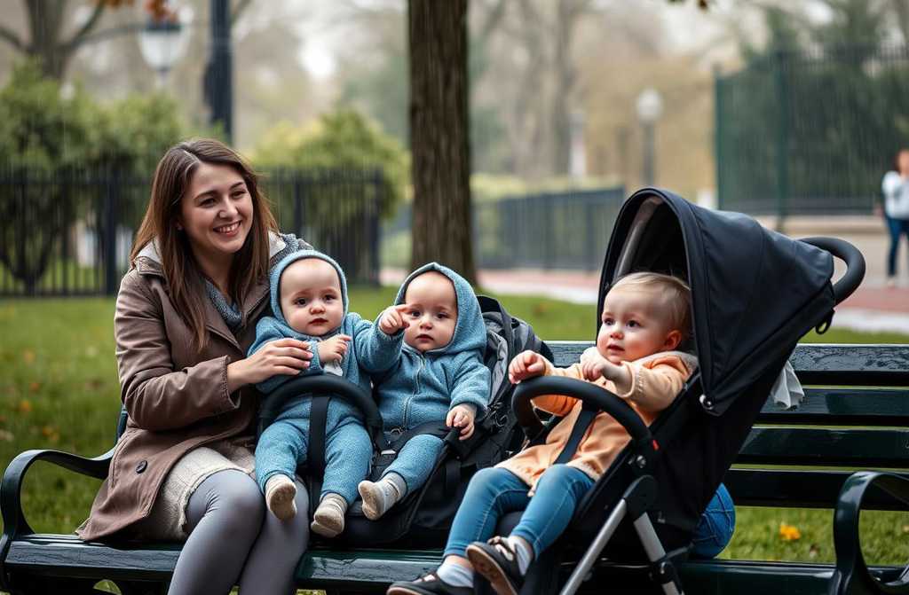 Jack reached out, clumsily trying to grab Emmas finger, while Lucy spun around in her pram, clearly curious about the commotion.
