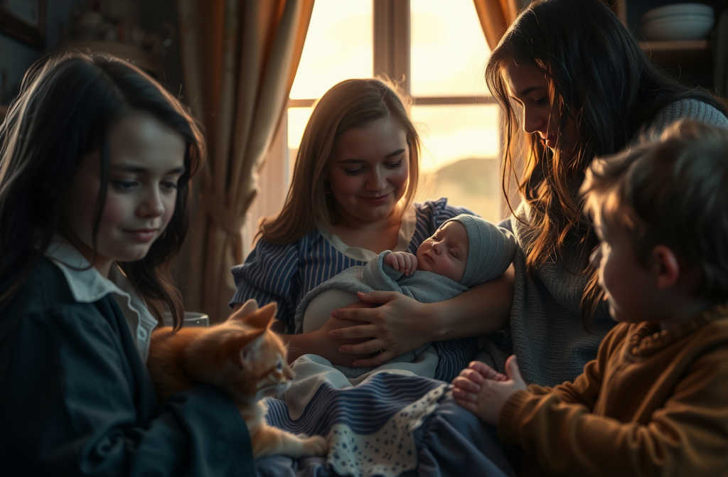 Somewhere, a teaspoon clinked, Rosies laughter pealed, and silence slipped wistfully from the sill, gently ruffling the cats ear. The cat shook its head, then began a careful wash, ready to welcome the new family member.