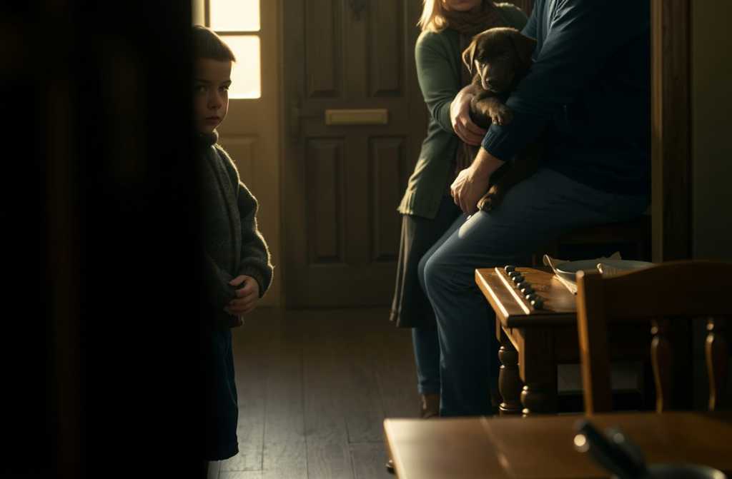 Edward checked on William once or twice; he slept heavily, restlessly. So he wrapped up warm, sat again on the step and waited for his wife. When dawn approached, Lucy finally returned, pale and exhausted under the glow of the porch lamp. Edward hugged her.