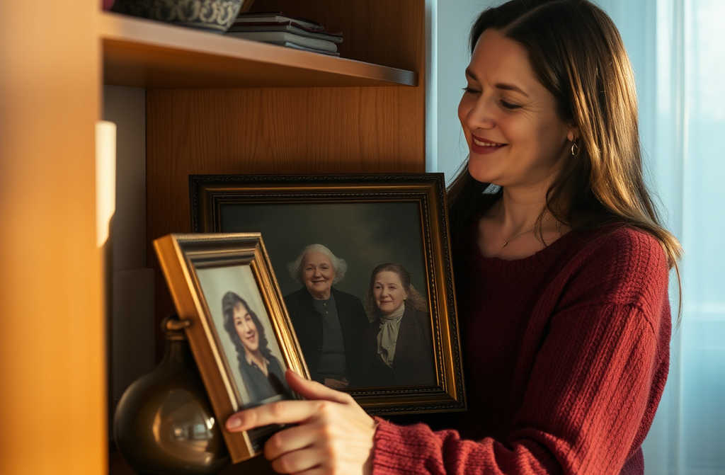 Her mother squinted at the frame, her expression flickering before settling back into its usual mask.