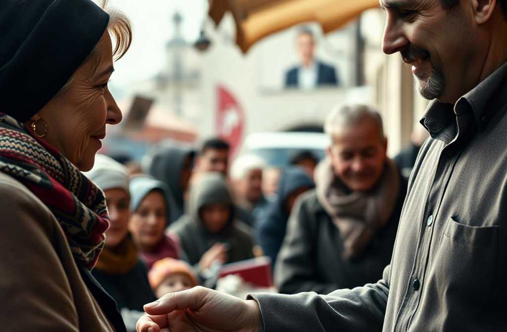 The old woman walks home with slow steps, but her heart is lighter. Under her arm, she carries a bag full of gifts from strangers. In her heart, she carries endless gratitude. Her sick husband waits, and now she can bring him not just bread and medicine, but news that goodness still exists.