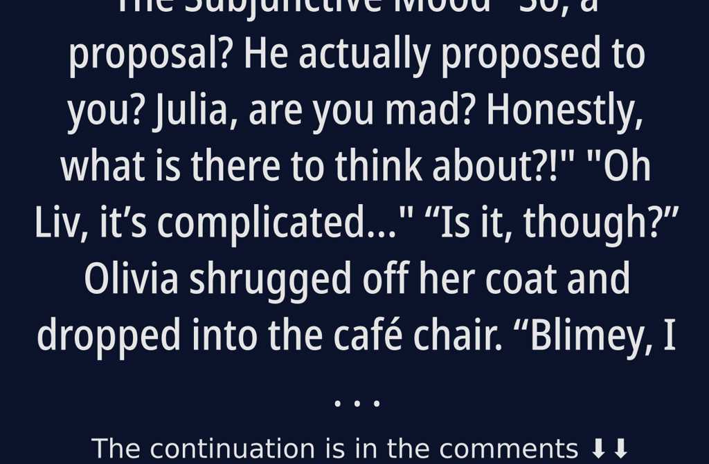 “So, a proposal? He actually proposed to you? Julia, are you mad? Honestly, what is there to think about?!”