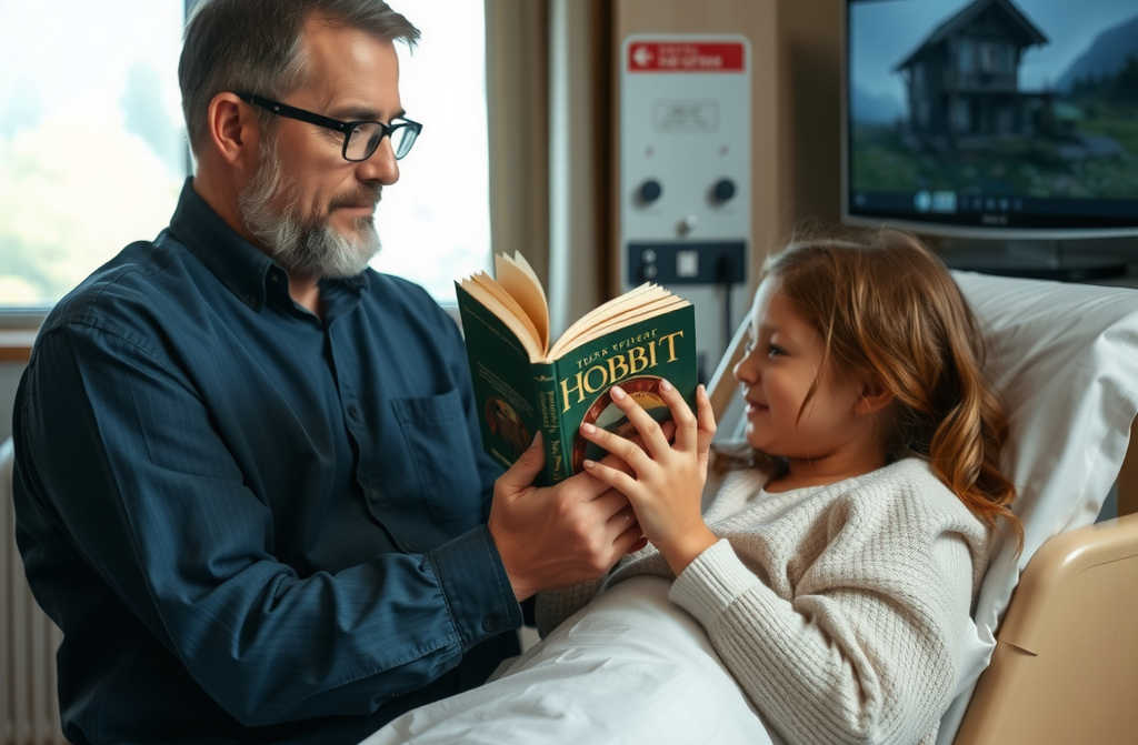 And my real dad ask him to come. Just sit. Quietly. And let him read. Like before. The Hobbit.