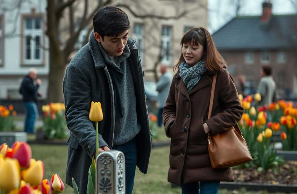 Once she had composed herself, Margaret helped him arrange the flowers properly. They stood in silence for a long while before she asked,