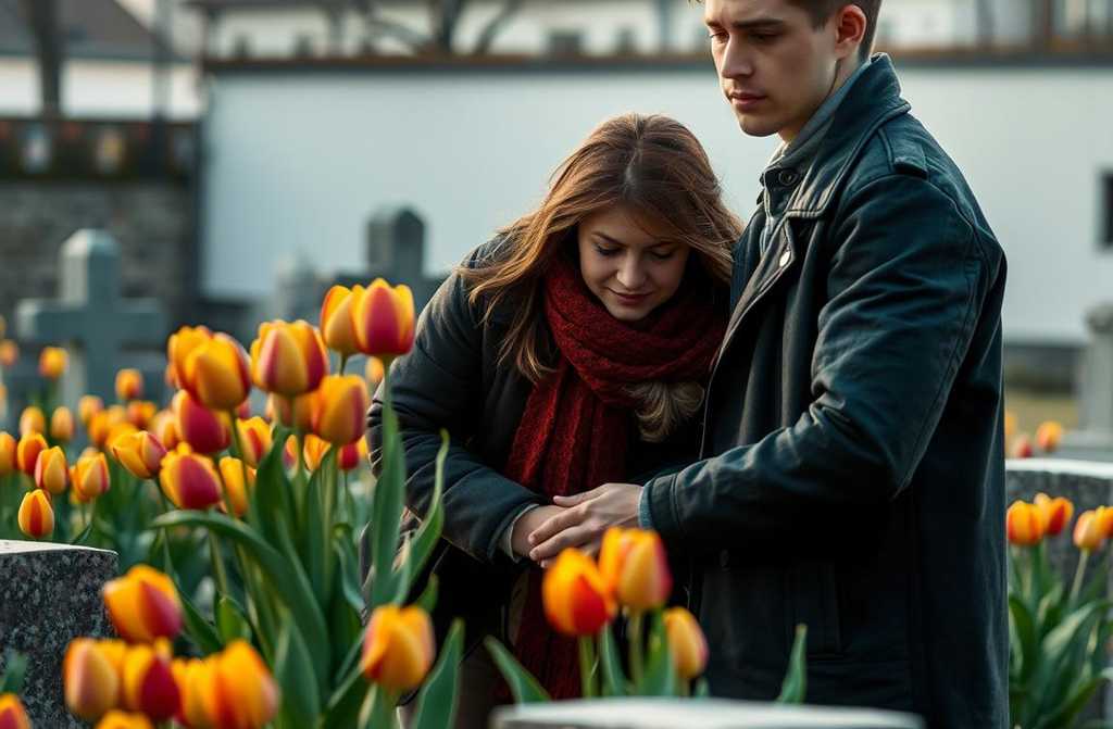 “Twelve tulips, please,” he said, handing over the money in pounds before bowing his head and walking into the quiet grounds.