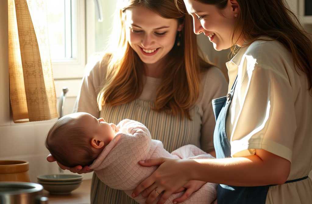 Probably napping. The birth was tough; her hips are narrow, making delivery hard. Ill help, were friends. Come, lets feed her; Ive made a tasty stew.
