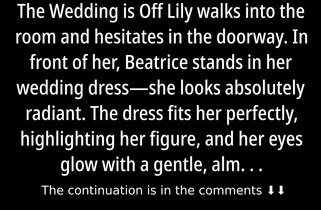 Lily walks into the room and hesitates in the doorway. In front of her, Beatrice stands in her wedding dressshe looks absolutely radiant. The dress fits her perfectly, highlighting her figure, and her eyes glow with a gentle, almost weightless happiness. Lily cant hold back her excitement: