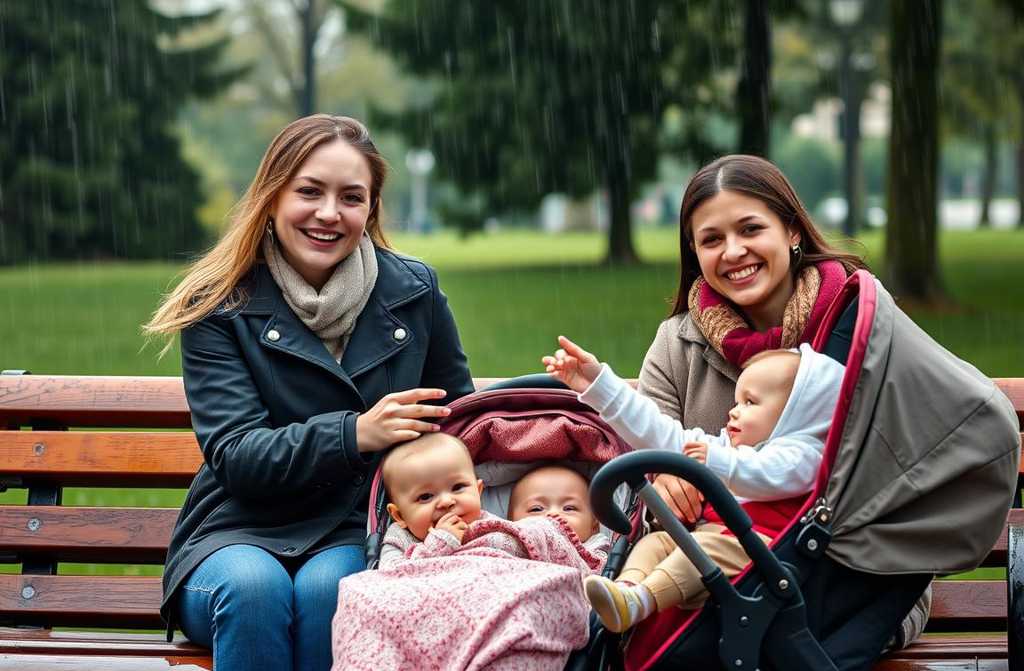 Mark reached out, clumsily trying to pinch Gwens finger, while Ellie twirled in her pram, clearly curious about the commotion.
