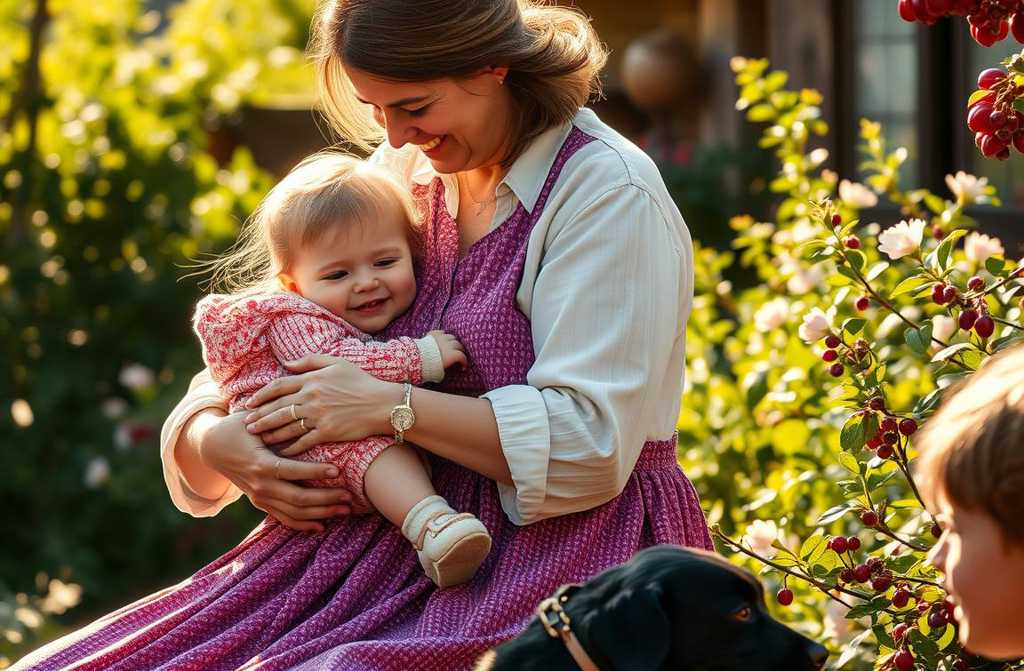 The girl in her dress reached for the bushes. A patch of dock stirred, and a cheeky black dog with white spots lifted its ear, glanced at the mother and child, and barked.