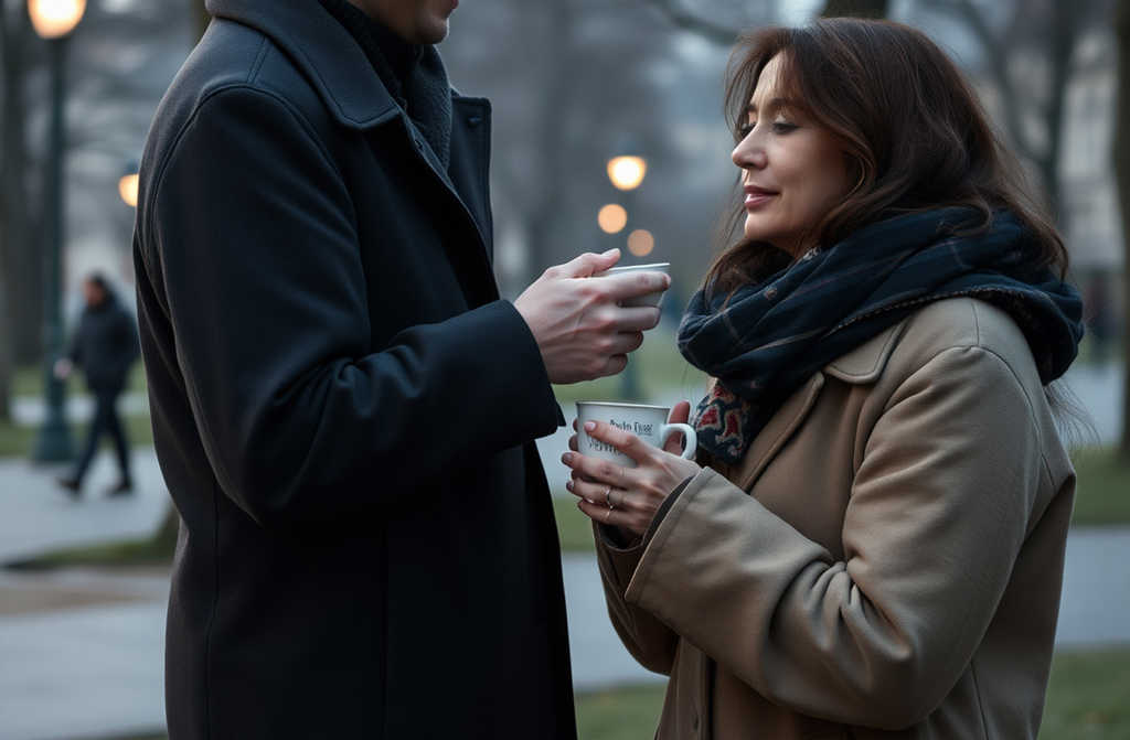 Some time later, a young man named William noticed me and crouched beside the bench to ask what was wrong. I didnt tell him about the betrayal, but we started talking, conversation flowing as though it was meant to. In a twist of fate, we ended up at his place, sipping tea late into the night.