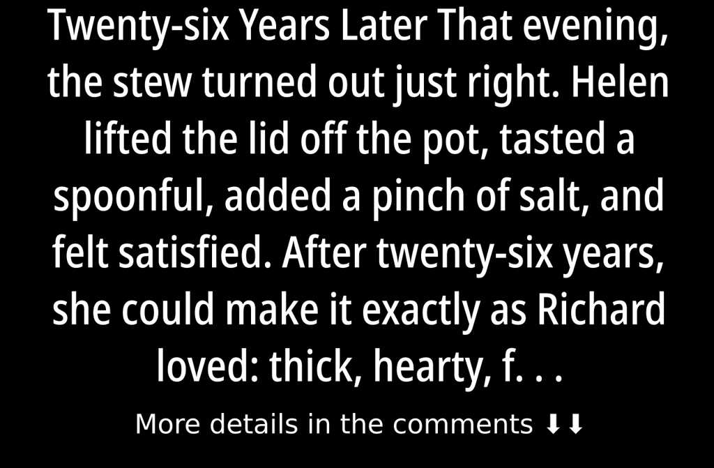 That evening, the stew turned out just right. Helen lifted the lid off the pot, tasted a spoonful, added a pinch of salt, and felt satisfied. After twenty-six years, she could make it exactly as Richard loved: thick, hearty, full of beef and carrots, with a swirl of rich, tangy cream and plenty of parsley, which she always tossed in at the last moment to keep the flavour bright. She set the table in the lounge, sliced the bread, and put out his favourite mugthe one with the faded enamel and chipped side, which hed always insisted on keeping, though it had definitely seen better days.