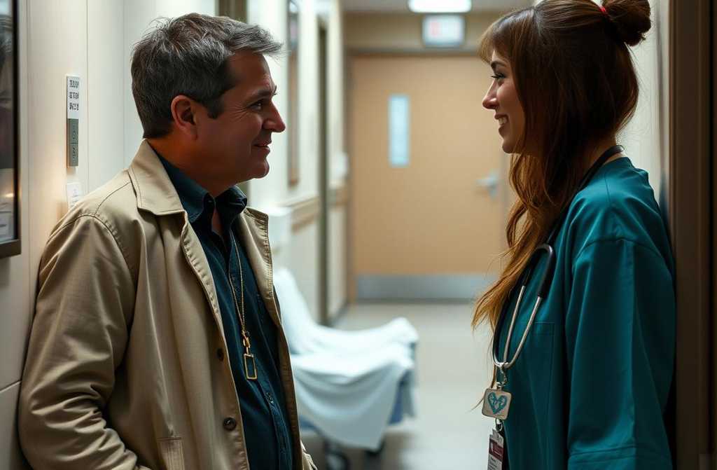She turned, pressed her cheek to his shoulder, and began to speak through tears: I operated on a woman who fell under a machine. I did everything I could. Shes in intensive care now, but she wont survive. She has two children; her husband is here with her.