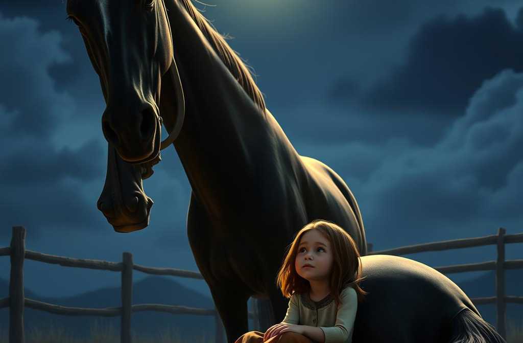 Poppys pulse raced, her nerves raw, as if she could not fathom why this tiny creature occupied his space. She lifted her gaze slowly; their eyes met. Minutes stretched, perhaps hours. Then the stallion lowered his massive head, turned his back, and lay his flank on the earth. Poppy did not smile, did not weep; she simply breathed deep.