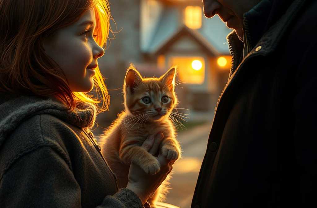 A velký rezavý kocour s údivem pozoroval, jak se o něj táta s holčičkou starají. Už se probral a teď mu bylo opravdu teplo.