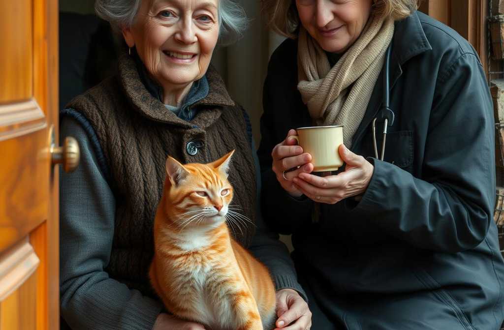 It was Mrs. Eleanor Whitaker, my neighbour on the second floor of a drab council block, who called me that evening. The walls there sigh in winter, letting drafts creep in. She said, Theres an old lady and her cat. People used to visit, now its only the postman. She says everythings fine, but could you have a look The cat sits at the front door at five oclock every day and never moves. He just sits, hour after hour, and she pretends its no big deal.