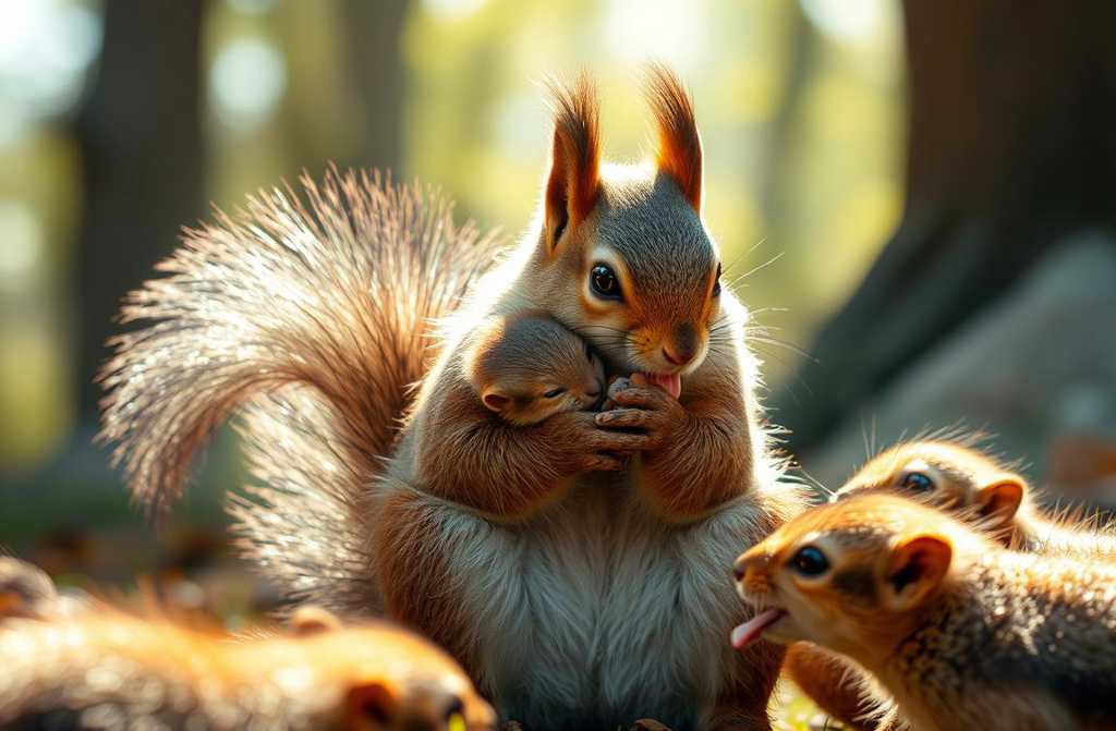 *Соціальна турбота. Білки вітатимуть одне одного, обнюхуючись, ніжно торкаючись мордочками, вилизуючи шерсть це їхній спосіб показати довіру і прихильність, немов тепле слово «завжди разом» під час святкування Різдва.*