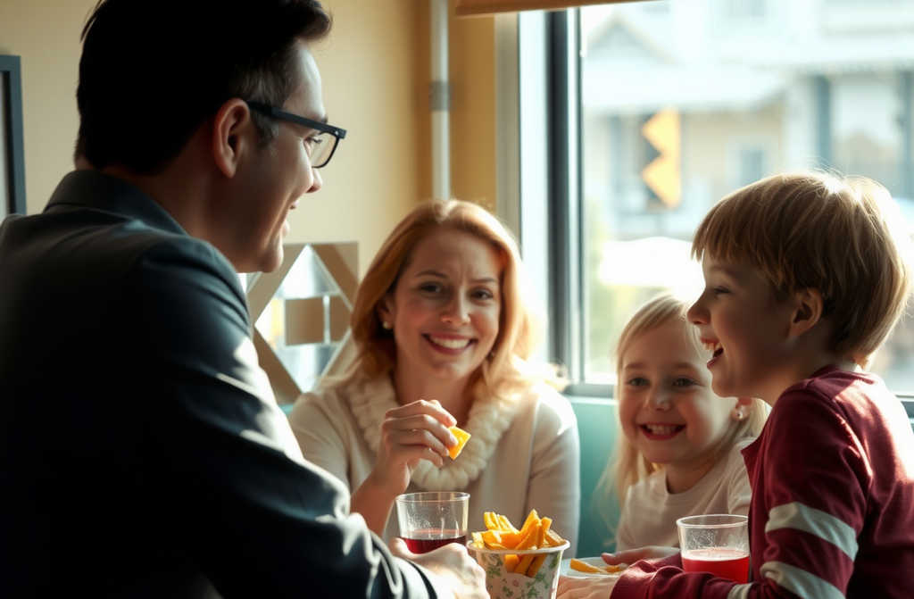 In a modest fast food spot on the outskirts of a quiet town in the Midlands, a woman named Evelyn Parker sits with her childrenher son, Jack, and her young daughter, Emilyat a table tucked in the corner.
