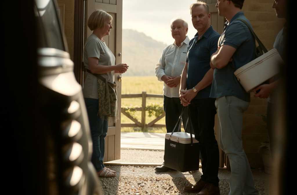 Edward clambered out of the car, feeling his shirt immediately stick to his back in the damp heat. Behind him, his wife Grace emerged, clutching an oversized cool bag sporting the slogan Butchers Best. Her attempt at a smile was swift and uncertain.