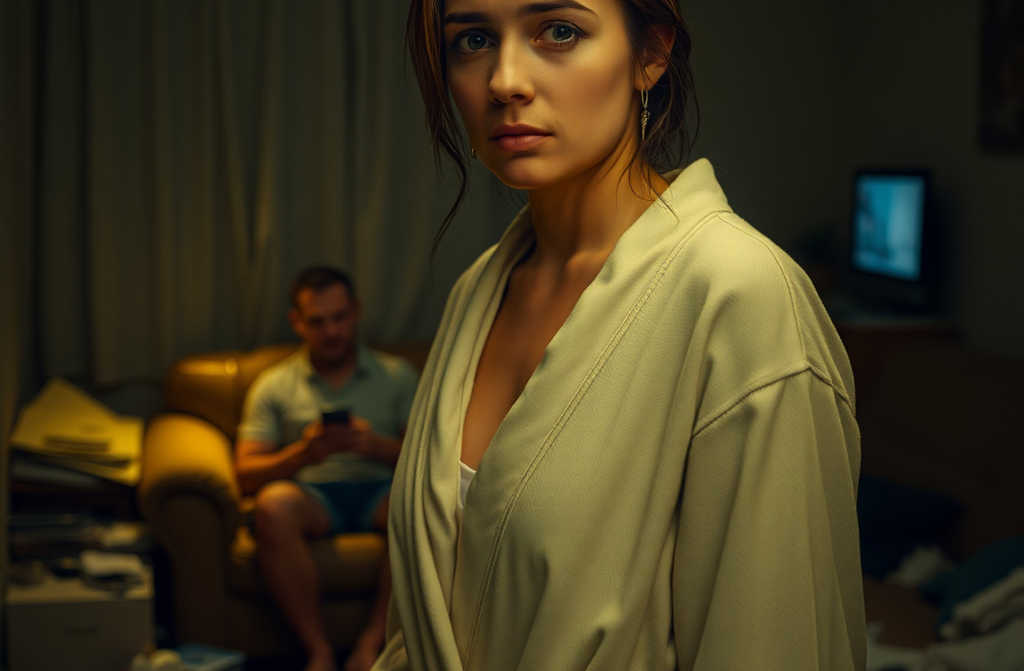 When I stepped out of the showerwhere Id stood under the water for at least ten minutes, numb, not feeling the heat or the coldhe was already on the sofa, scrolling through his phone. The flat, as usual, looked like a bombsite. I walked past him without a word.