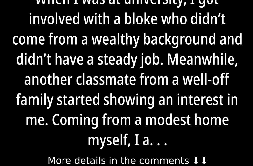 When I was at university, I got involved with a bloke who didnt come from a wealthy background and didnt have a steady job. Meanwhile, another classmate from a well-off family started showing an interest in me. Coming from a modest home myself, I always dreamed of a comfortable and happy life. So, when my boyfriend asked me to marry him, I turned him down and chose the security and prosperity my classmate could offer. Even though I loved my boyfriend, money was my top priority.