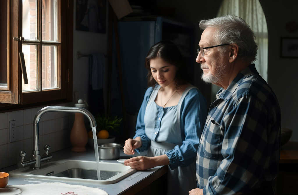 She stood quietly at the sink, her back rigid. He stared at her for a long moment and finally said, in a low voice: