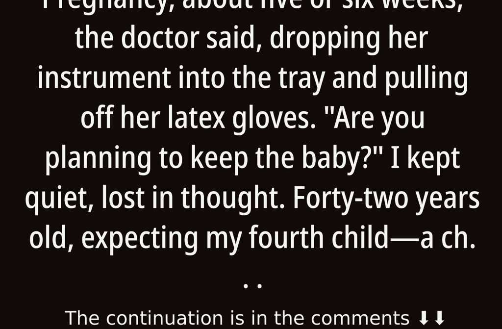 I kept quiet, lost in thought. Forty-two years old, expecting my fourth childa child I hadnt planned for, nor did I particularly want. Wages were tight; we barely scraped by, counting the days until next payday.