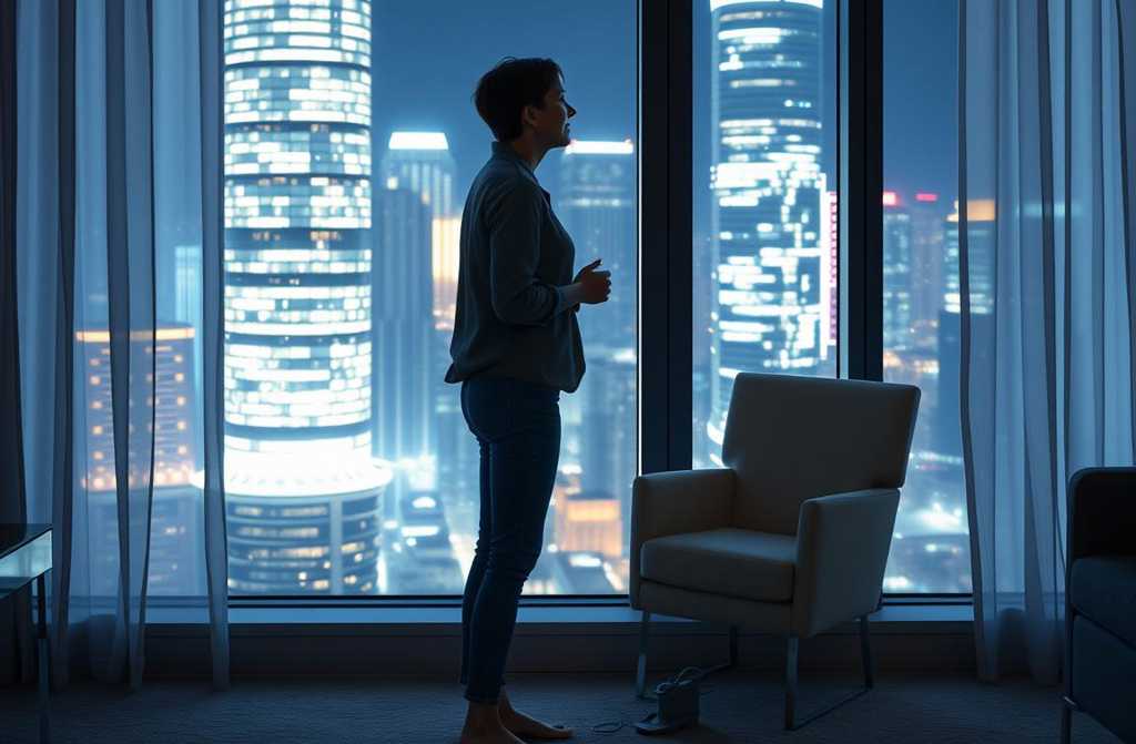 The door of the luxury suite closed softly behind the porter. Poppy stood alone in the vast living room with floortoceiling windows.