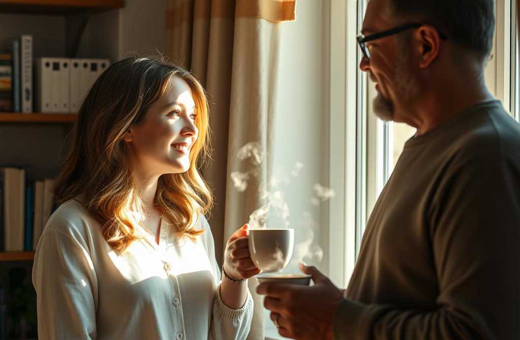 Наступного ранку Олег входить на кухню, виглядаючи так, ніби вже ухвалив остаточне рішення. Олена сидить за столом з чашкою кави, чекаючи продовження вчорашньої розмови.